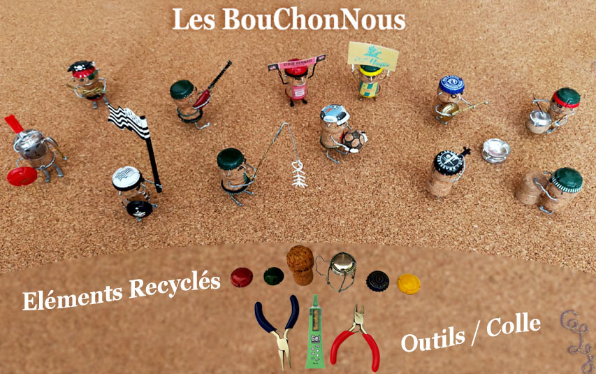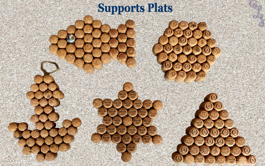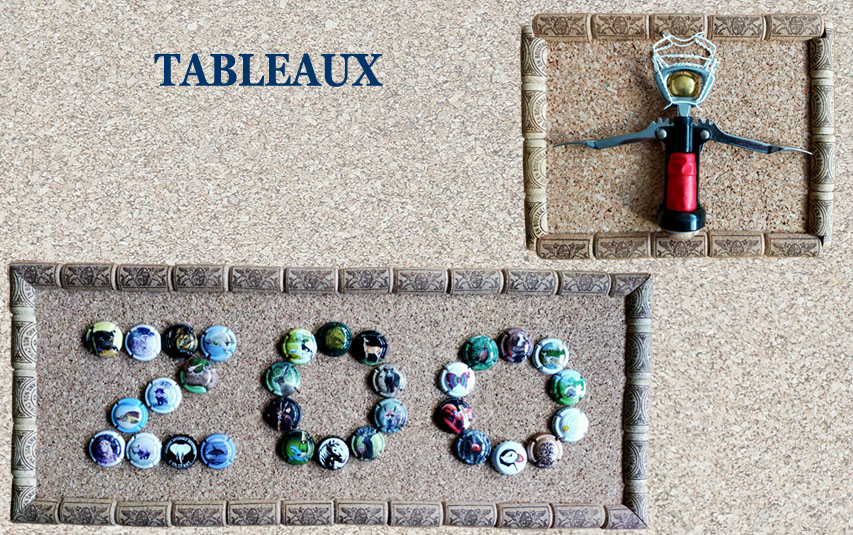 Créations en matière liège de récupération : Bouchons , Muselets et Capsules de bouteille , Plaques et Panneaux de Liège .